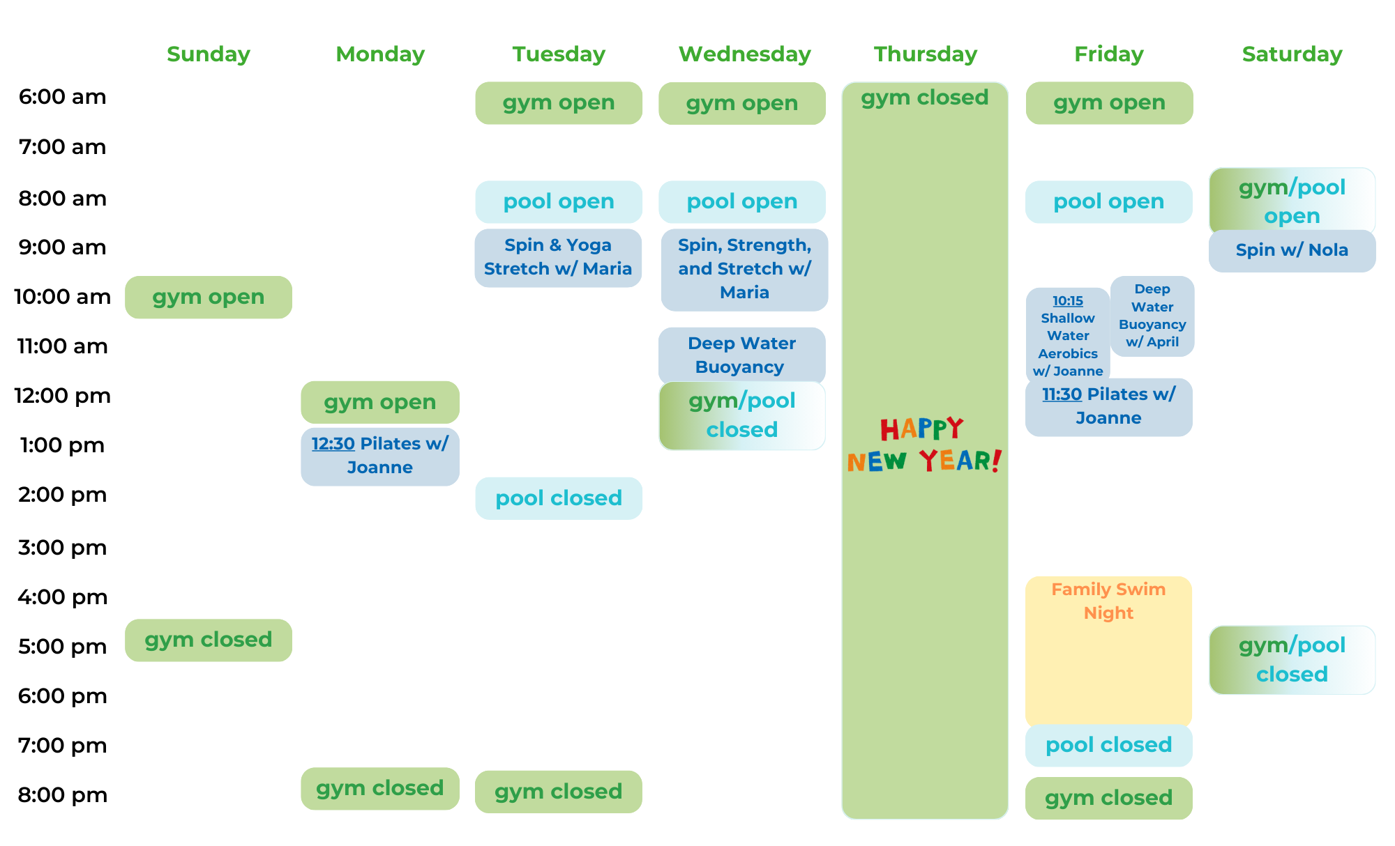 New class schedule for February and April